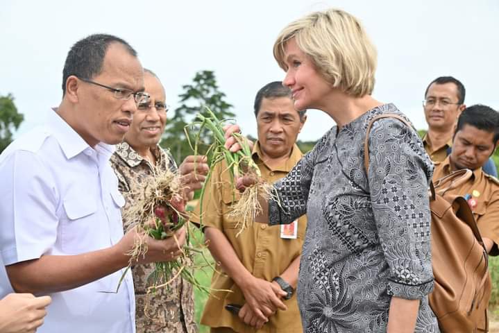 Humbahas – Kepala Perwakilan Bank Dunia untuk Indonesia dan Timor-Leste Mrs Satu Kahkonen bersama rombongan yaitu Mrs Bolormaa Amgaabazar, Operations Manager, Mr Andre Aquino, Lead Environmental Specialist, Mr. Vikas Choudhary, Senior Agriculture Specialist, Mr. Animesh Shrivastava, Lead Agriculture Economist, Ms. Alika Tuwo, Agriculture Economist dan Ms. Ariza Nurana, Program Assistant berkunjung ke Kabupaten Humbang Hasundutan, Selasa (6/6).