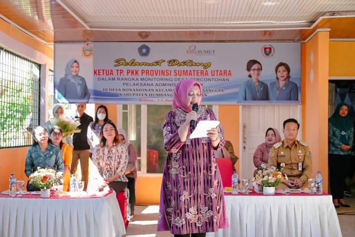 Humbahas – Ketua TP PKK Provsu Ny Nawal Edy Rahmayadi dan rombongan kunjungan kerja ke Kabupaten Humbahas, Selasa (13/6) dalam rangka pelaksanaan kegiatan monitoring desa percontohan. Kegiatan diawali mengunjungi Desa Bonanionan Kecamatan Doloksanggul sebagai pelaksana tertib administrasi.