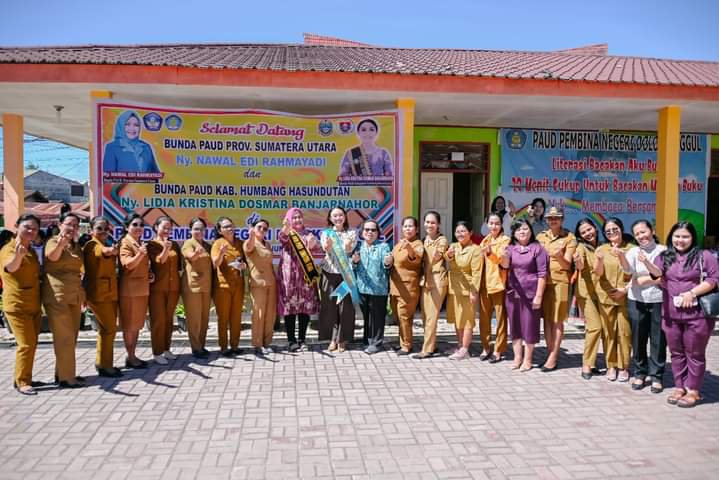 Selanjutnya Ketua TP PKK Sumut/Bunda PAUD Provsu Ny Nawal Edy Rahmayadi didampingi Ketua TP PKK Humbahas/Bunda Paud Humbahas Ny Lidia Dosmar Banjarnahor dan rombongan mengunjungi PAUD Pembina Negeri Doloksanggul.